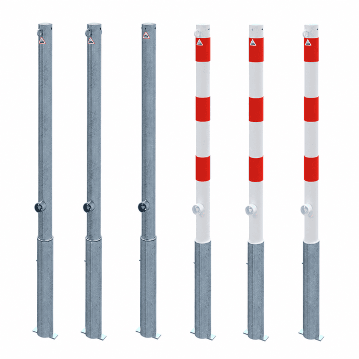 De paal is voorzien van een aangelaste stalen kap en heeft een hoogte van 900 mm boven de grond. Dankzij het zelfvergrendelende driehoeksslot volgens DIN 3223 is de paal veilig te vergrendelen en eenvoudig te verwijderen wanneer nodig.