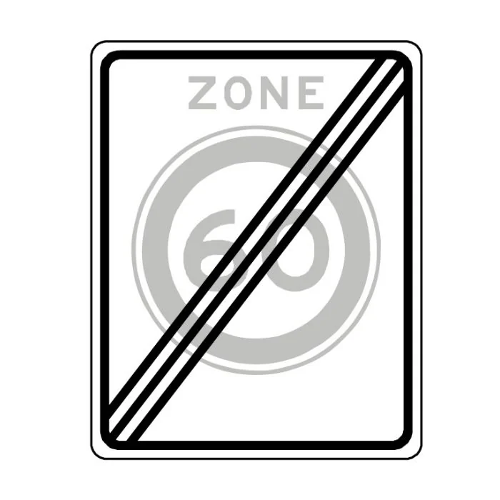 Verkeersbord A02(60)ze - Einde zone met maximum snelheid 60 geldend in een vastgesteld zonegebied