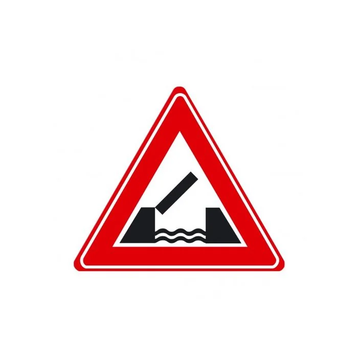 Verkeersbord J15 Waarschuwing beweegbare brug Reflectieklasse 3 Standaard afmeting driehoek 70 cm Leverbaar in afmeting driehoek 70 cm, 90 cm en 110 cm Dubbel Omgezette Rand