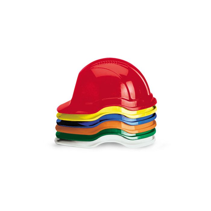 Luxe veiligheidshelm, uitgerust met een op 6 punten verstelbaar textielharnas, een zweetband en een diepe nekband.