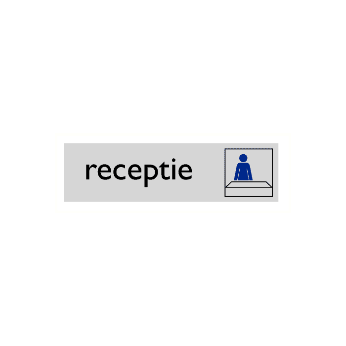 Deurbord “Receptie” Kunststof bord (PVC) met aluminium look Voorzien van een dunne dubbelzijdige kleefstrook Leverbaar in de afmeting 165 x 45 mm Dikte 1 mm