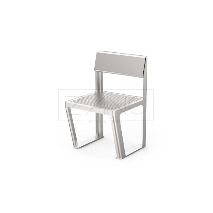De Scandik metalen stoel is een moderne en robuuste zitoplossing voor openbare ruimtes. Dankzij het minimalistische design en de volledig stalen uitvoering past deze stoel perfect in parken, pleinen, wachtruimtes en andere stedelijke omgevingen. De constructie is uitgevoerd in RVS (1.4301) of staal (S235JR), waarbij de stalen variant thermisch verzinkt en gepoedercoat wordt in een RAL-kleur naar keuze. De zitting is afgewerkt met geperforeerde staalplaat met openingen van 8 mm, wat zorgt voor een eigentijdse uitstraling en goede waterafvoer. De Scandik stoel is ontworpen voor intensief buitengebruik en combineert duurzaamheid met een strak design.