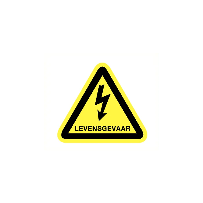 Levensgevaar electrische spanning. Vinyl sticker Afmetingen 5 cm, 9 cm, 20 cm en 30 cm.