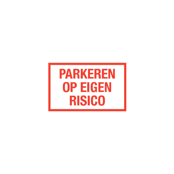 Tekstbord Parkeren op eigen risico Kunststof bord (PP) Leverbaar in de afmeting 40 x 25 cm