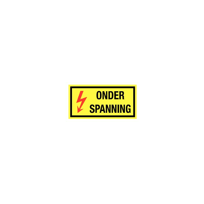 Onder spanning. Vinyl sticker Afmetingen 20 x 10 cm en 35 x 20 cm