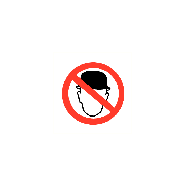 Verbod hoed / helm te dragen. Vinyl sticker Afmeting Ø 20 cm
