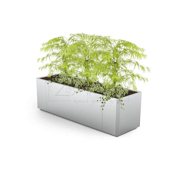 Deze moderne plantenbak combineert een strak ontwerp met een duurzame en hoogwaardige constructie. Dankzij de minimalistische vormgeving en de robuuste materiaalkeuze is deze plantenbak een stijlvolle oplossing voor uiteenlopende inrichtingsprojecten.