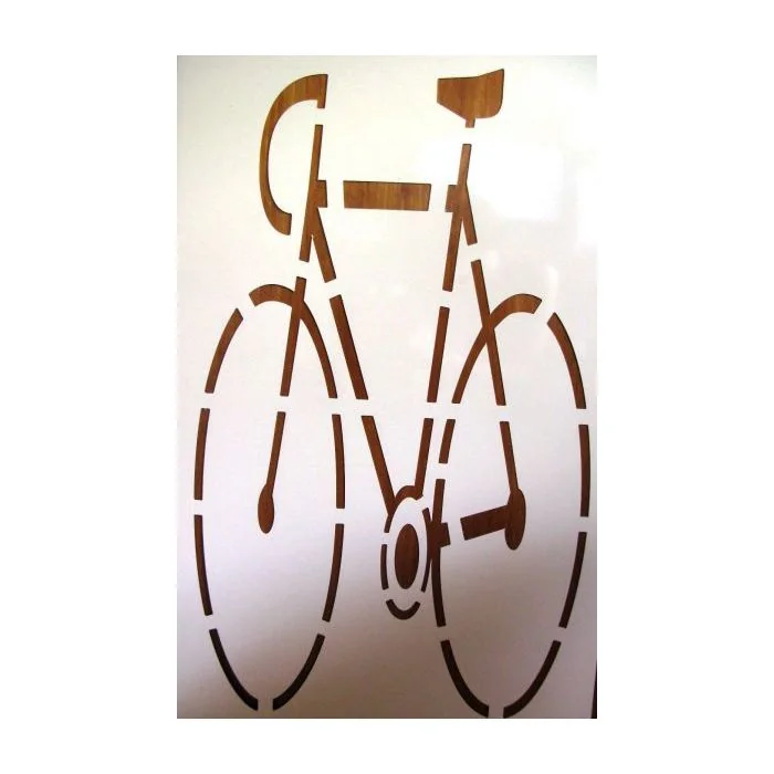 Sjabloon fiets Sjabloon witte PVC: 90 x 50 cm, dikte 1 mm Afmeting fiets 69 x 84 cm (breedte x hoogte) Gewicht sjabloon circa 300 gram Sjabloon fiets is herbruikbaar Materiaal sjabloon is pvc