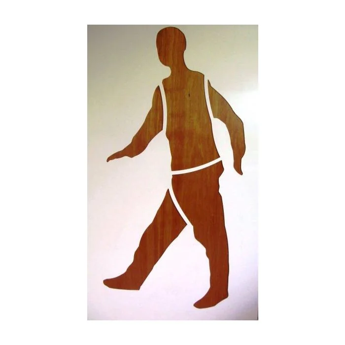 Sjabloon voetganger Sjabloon witte PVC 90 x 50 cm, dikte 1 mm Afmeting sjabloon 86 x 35 cm Gewicht sjabloon circa 300 gram Sjabloon voetganger is herbruikbaar Materiaal sjabloon is pvc