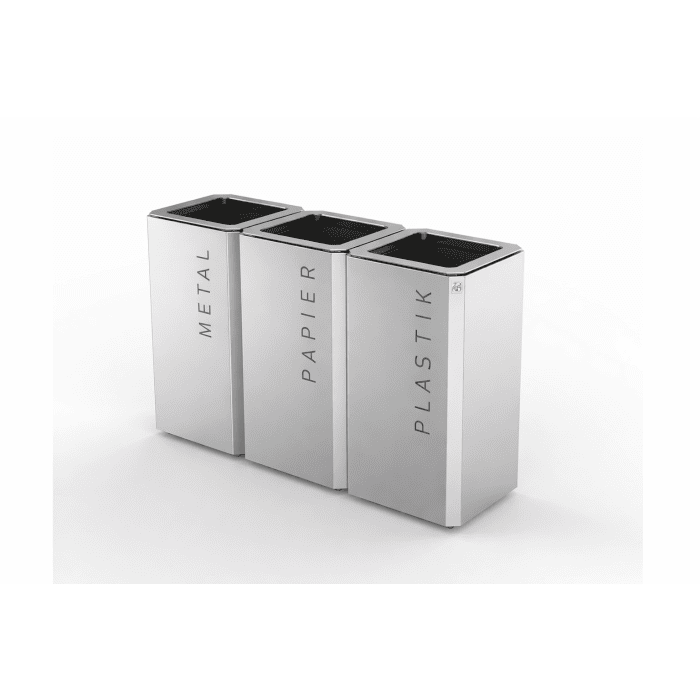 De afvalbak is uitgerust met drie uitneembare binnenbakken van gegalvaniseerd staal met een dikte van 0,8 mm en een inhoud van 69 liter per bak. De bak wordt geopend door het bovenste deksel naar achteren te kantelen, wat zorgt voor eenvoudig en praktisch gebruik.