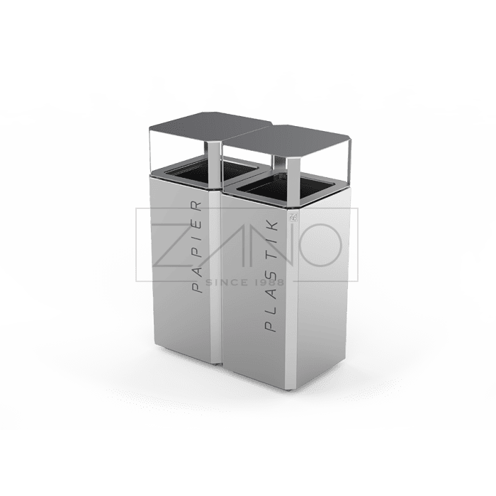 De afvalbak is uitgerust met twee uitneembare binnenbakken van gegalvaniseerd staal met een dikte van 0,8 mm en een inhoud van 69 liter per bak. De bak wordt geopend door het bovenste deksel naar achteren te kantelen, wat zorgt voor eenvoudig en praktisch gebruik.