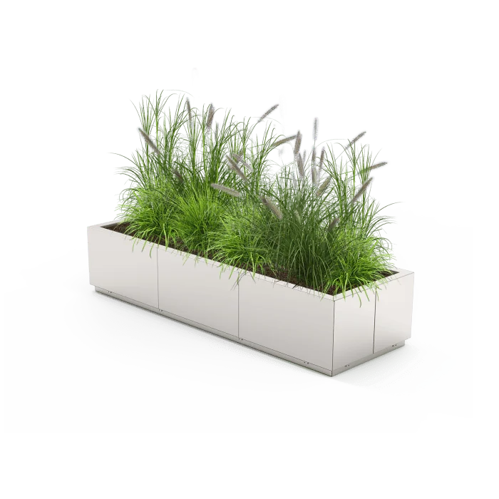 De plantenbak is vervaardigd uit staal en ontworpen voor een duurzame en hoogwaardige afwerking. Klanten kunnen kiezen uit gegalvaniseerd staal met poedercoating in een RAL-kleur naar keuze of RVS, dat bekendstaat om zijn elegante uitstraling en uitstekende weerbestendigheid.