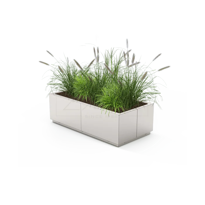 De plantenbak is vervaardigd uit staal en ontworpen voor een duurzame en hoogwaardige afwerking. Klanten kunnen kiezen uit gegalvaniseerd staal met poedercoating in een RAL-kleur naar keuze of RVS, dat bekendstaat om zijn elegante uitstraling en uitstekende weerbestendigheid.