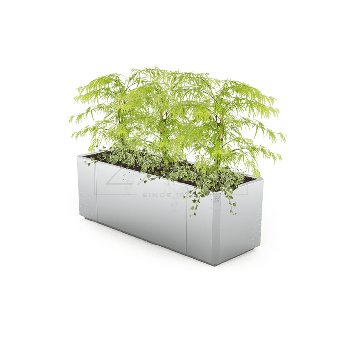 Deze moderne plantenbak combineert een strak ontwerp met een duurzame en hoogwaardige constructie. Dankzij de minimalistische vormgeving en de robuuste materiaalkeuze is deze plantenbak een stijlvolle oplossing voor uiteenlopende inrichtingsprojecten.