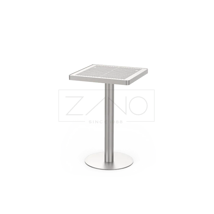 De Scandik 13.046.1.P tafel is een moderne en compacte buitentafel met een strak en tijdloos design. Dankzij de minimalistische vormgeving en hoogwaardige afwerking past deze tafel perfect in zowel moderne als klassieke buitenomgevingen zoals terrassen, pleinen en openbare ruimtes. De constructie is uitgevoerd in RVS (1.4301) of staal (S235JR), waarbij de stalen variant thermisch verzinkt en gepoedercoat wordt in een RAL-kleur naar keuze. Het tafelblad is vervaardigd uit geperforeerd staal, wat zorgt voor een eigentijdse uitstraling en praktische voordelen zoals waterafvoer en eenvoudig onderhoud. De Scandik 13.046.1.P is onderdeel van de Scandik-lijn en laat zich uitstekend combineren met andere elementen uit deze serie voor een uniforme en functionele inrichting van de buitenruimte.