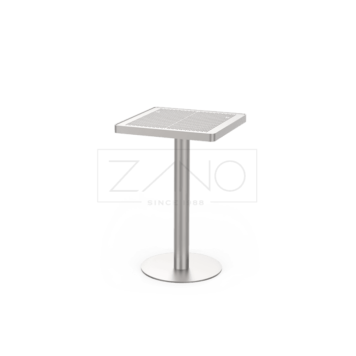 De Scandik 13.046.1.P tafel is een moderne en compacte buitentafel met een strak en tijdloos design. Dankzij de minimalistische vormgeving en hoogwaardige afwerking past deze tafel perfect in zowel moderne als klassieke buitenomgevingen zoals terrassen, pleinen en openbare ruimtes. De constructie is uitgevoerd in RVS (1.4301) of staal (S235JR), waarbij de stalen variant thermisch verzinkt en gepoedercoat wordt in een RAL-kleur naar keuze. Het tafelblad is vervaardigd uit geperforeerd staal, wat zorgt voor een eigentijdse uitstraling en praktische voordelen zoals waterafvoer en eenvoudig onderhoud. De Scandik 13.046.1.P is onderdeel van de Scandik-lijn en laat zich uitstekend combineren met andere elementen uit deze serie voor een uniforme en functionele inrichting van de buitenruimte.