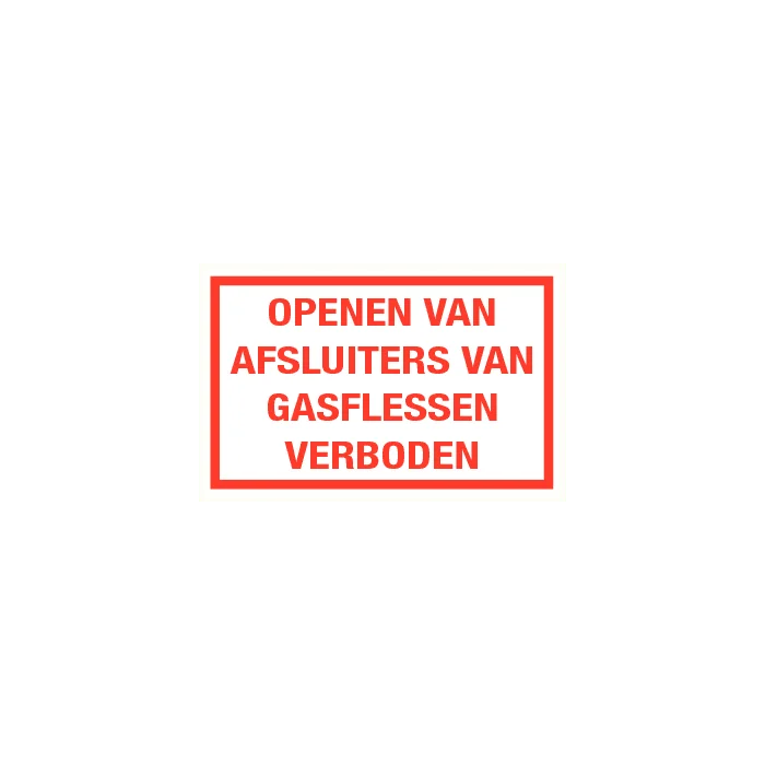 Tekstbord Openen van afsluiters van gasflessen verboden Kunststof bord (PP) Leverbaar in de afmeting 40 x 30 cm