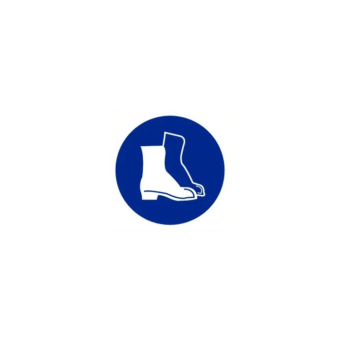 Veiligheidsschoenen verplicht. Vinyl sticker Afmetingen Ø 5 cm, Ø 9 cm, Ø 20 cm, Ø 30 cm, Ø 40 cm en Ø 60 cm
