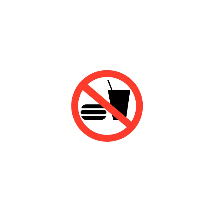 Verbod voor eten en drinken Vinyl sticker Leverbaar in de afmeting Ø 9 cm en Ø 20 cm.