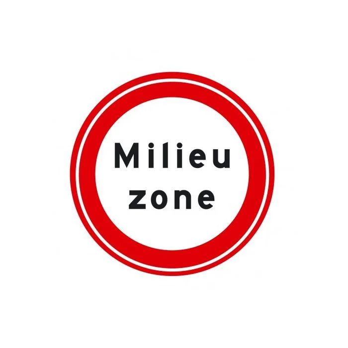 Verkeersbord C22a Gesloten voor vrachtauto's die niet voldoen aan de gestelde milieueisen Reflectieklasse 3 Standaard afmeting Ø 60 cm Leverbaar in diameter ø 60 cm en ø 80 cm Materiaal: aluminium Uitvoering: Dubbel Omgezette Rand (DOR) Productnorm: NEN-EN 12899-1