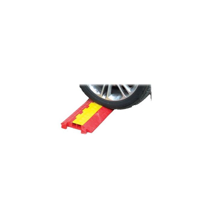 Kabeldrempel PU met plastic deksel Afmeting per element 100 x 25 x 4,5 cm (l x br x h) Uitsparingen 2 stuks van 35 x 35 mm Gewicht circa 4 kg Tot max 10 ton totaalgewicht overrijdbaar